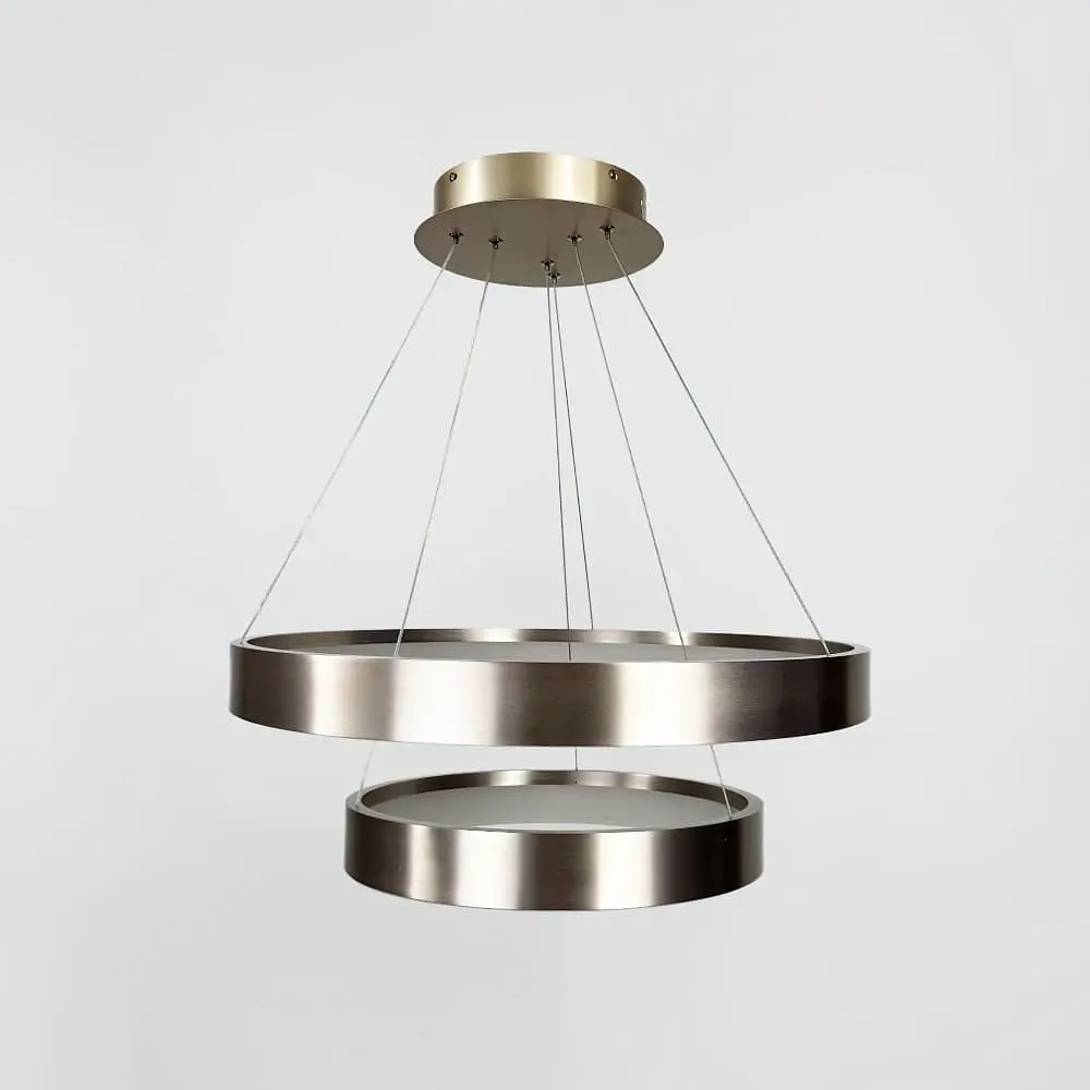 Современная кольцевая люстра в элегантном сатиновом оттенке Carmine - это изящное сочетание трендового дизайна и функционального освещения. Ее лаконичная форма с мягкими очертаниями идеально подходит к минималистичным, модерновым и скандинавским интерьерам. Сатиновое покрытие корпуса придает светильнику изысканный вид, а необычный цвет добавляет интерьеру глубины и индивидуальности. Модель представлена в двух вариантах: с одним кольцом - диаметром 60 или 80 см с двумя кольцами - диаметром 60+40 или 80+60 см Благодаря регулируемой подвесной системе, люстру можно установить на высоте от 35 до 120 см, что позволяет адаптировать ее к различным помещениям и потребностям. Встроенное LED освещение с нейтральной температурой света (около 4000К) обеспечивает комфортное и естественное освещение, идеальное для рабочих зон, гостиных или просторных холлов. Эта люстра не только источник света, но и стильный акцент, который придает пространству современный шарм. Количество источников света: 6 Тип помещения: Люстры для гостиной (в зал) Форма_изделия: Кольцо Серия: MJ262 Цвет основы: Сатин Диаметр кольца: 60+40 см Размер потолочной основы: 25х5,5 см Цветовая температура: 4000К Максимальная высота: 120 см Минимальная высота: 35 см Материал основания: Металл Размер монтажной планки: 21 см Тип крепления: Крестовина Мощность (Вт): 85w