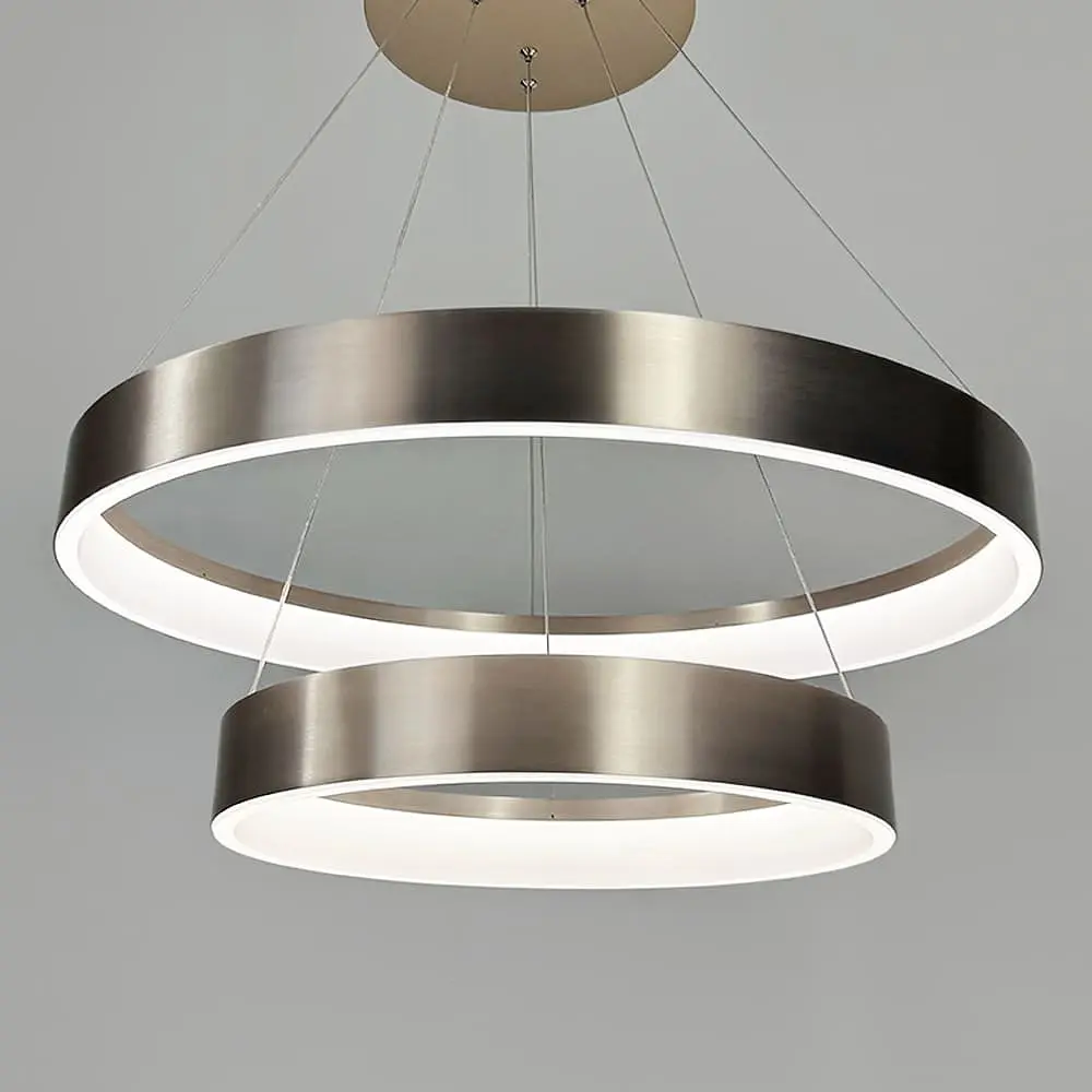 Современная кольцевая люстра в элегантном сатиновом оттенке Carmine - это изящное сочетание трендового дизайна и функционального освещения. Ее лаконичная форма с мягкими очертаниями идеально подходит к минималистичным, модерновым и скандинавским интерьерам. Сатиновое покрытие корпуса придает светильнику изысканный вид, а необычный цвет добавляет интерьеру глубины и индивидуальности. Модель представлена в двух вариантах: с одним кольцом - диаметром 60 или 80 см с двумя кольцами - диаметром 60+40 или 80+60 см Благодаря регулируемой подвесной системе, люстру можно установить на высоте от 35 до 120 см, что позволяет адаптировать ее к различным помещениям и потребностям. Встроенное LED освещение с нейтральной температурой света (около 4000К) обеспечивает комфортное и естественное освещение, идеальное для рабочих зон, гостиных или просторных холлов. Эта люстра не только источник света, но и стильный акцент, который придает пространству современный шарм. Мощность (Вт): 5,5 Вт Тип помещения: Люстры для гостиной (в зал) Форма_изделия: Кольцо Серия: MJ262 Цвет основы: Сатин Диаметр кольца: 80+60 см Размер потолочной основы: 25х5,5 см Цветовая температура: 4000К Максимальная высота: 120 см Минимальная высота: 35 см Материал основы: Металл Размер монтажной планки: 21 см Тип крепления: Крестовина