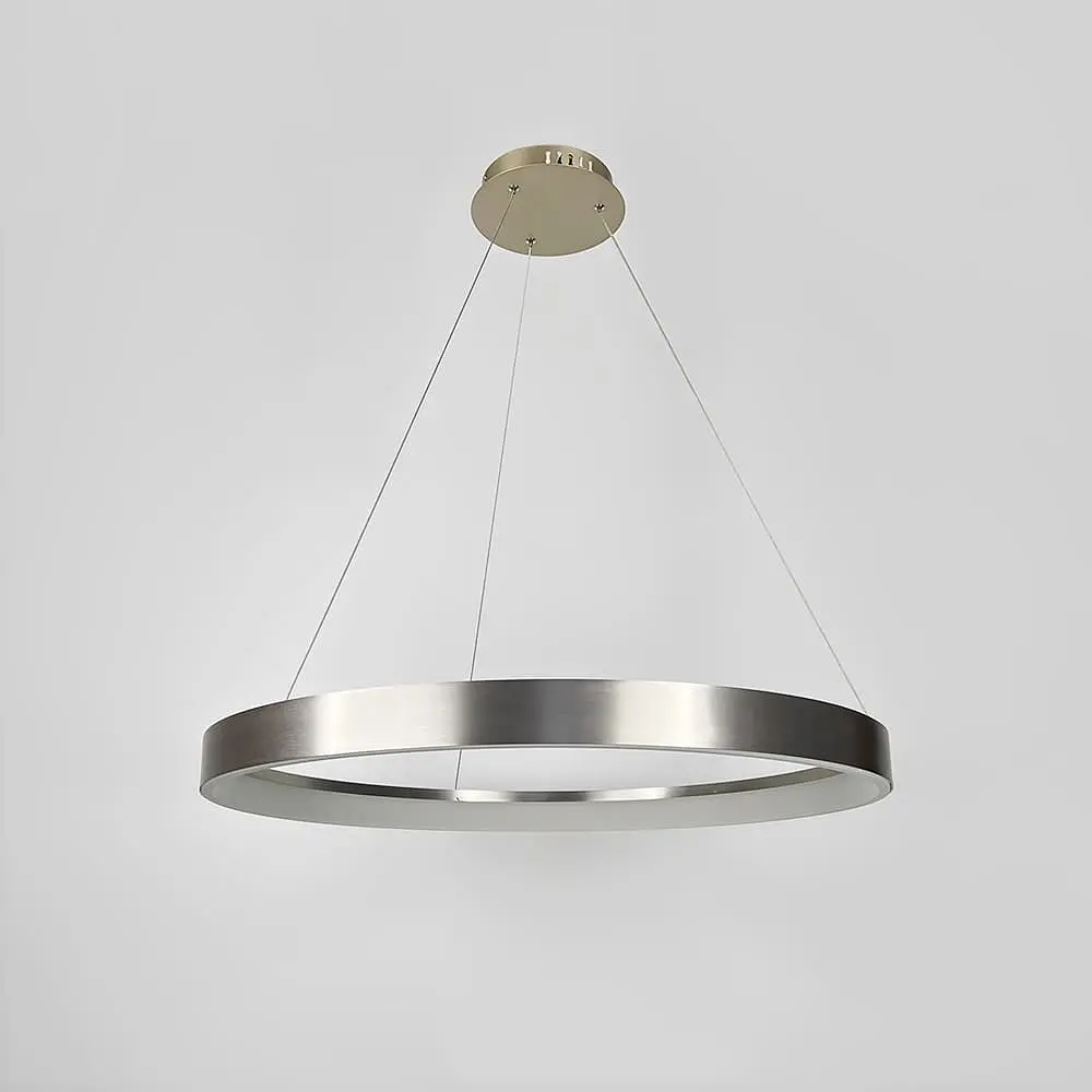 Современная кольцевая люстра в элегантном сатиновом оттенке Carmine - это утонченное сочетание трендового дизайна и функционального освещения. Ее лаконичная форма с мягкими очертаниями идеально подходит к минималистичным, модерновым и скандинавским интерьерам. Сатиновое покрытие корпуса придает светильнику изысканный вид, а необычный цвет придает интерьеру глубины и индивидуальности. Модель представлена в двух размерах кольца - диаметром 60 или 80 см при высоте корпуса 6 см. Благодаря регулируемой подвесной системе, люстру можно установить на высоте от 35 до 120 см, что позволяет адаптировать ее к разным помещениям и потребностям. Встроенное LED освещение с нейтральной температурой света (около 4000K) обеспечивает комфортное и естественное освещение, идеальное для рабочих зон, гостиных или просторных холлов. Эта люстра не только источник света, но и стильный акцент, придающий простору современного шарма. Количество источников света: 80 Тип помещения: Люстры для гостиной (в зал) Форма_изделия: Круглая Серия: MJ262 Цвет основы: Сатин Размер потолочной основы: 21х4 см Цветовая температура: 4000K Максимальная высота: 120 см Минимальная высота: 35 см Материал основы: Металллл Размер монтажной планки: 17 см Тип крепления: Монтажная планка Мощность (Вт): 42