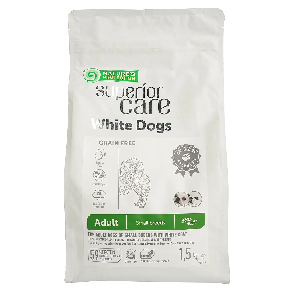 Сухой беззерновой корм для взрослых собак малых пород с протеином насекомых Nature's Protection Superior Care содержит формулу Tear Stains Off - тщательно подобранный аминокислотный комплекс и полностью сбалансированные ингредиенты в составе, которые могут помочь бороться с коричневыми пятнами слез вокруг глаз, мордочки, лап или других питомца.