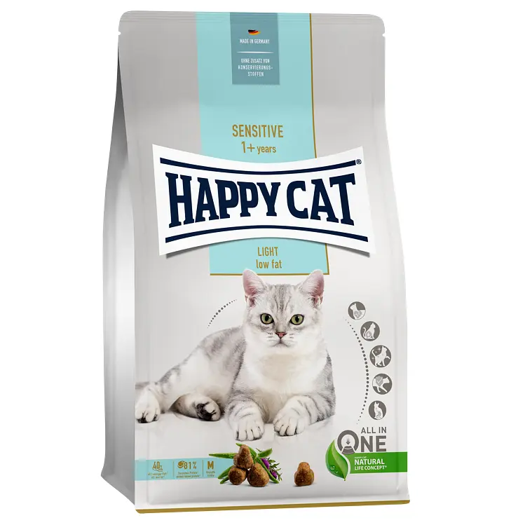 Сухой корм Happy Cat (Хэппи Кэт) Sensitive Light разработан специально для поддержания нормального веса у кошек с лишним весом или склонных к полноте.