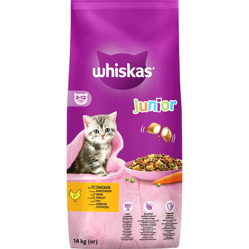 Сухой корм для котят Whiskas (Вискас) - полнорационный сухой корм для котят до 1 года.