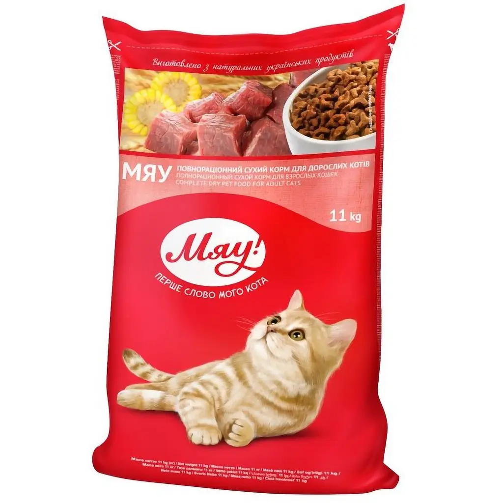 Сухий корм Мяу з кроликом мої коти їдять із задоволенням — усі справді полюбили його смак. Гранули невеликі, зручні для жування, навіть вибагливі котики із задоволенням харчуються. Запах корму приємний, не різкий, що теж важливо. Коти виглядають ситими та активними після їжі, видно, що добре засвоюється. Насипаю його також і дворовим котам, тому великий об’єм 11 кг ідеально підходить, коли є свої котики вдома та ще підгодовуєш вулицю. Загалом, залишилися дуже задоволені цим кормом.