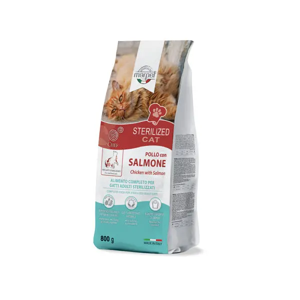 Marpet Aequilibria Chef с курицей и лососем - это сухой корм, специально разработанный для стерилизованных кошек.
