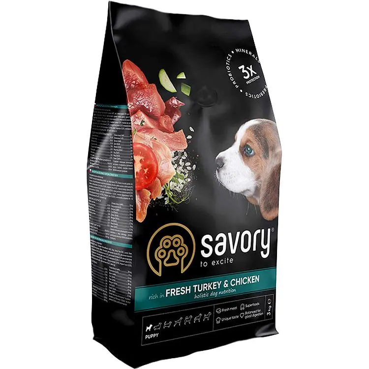 Сухой корм для щенков Savory Puppy rich in Fresh Turkey & Chicken пробудит у вашего любимца ту жизненную энергию, о которой он даже сам не знал.