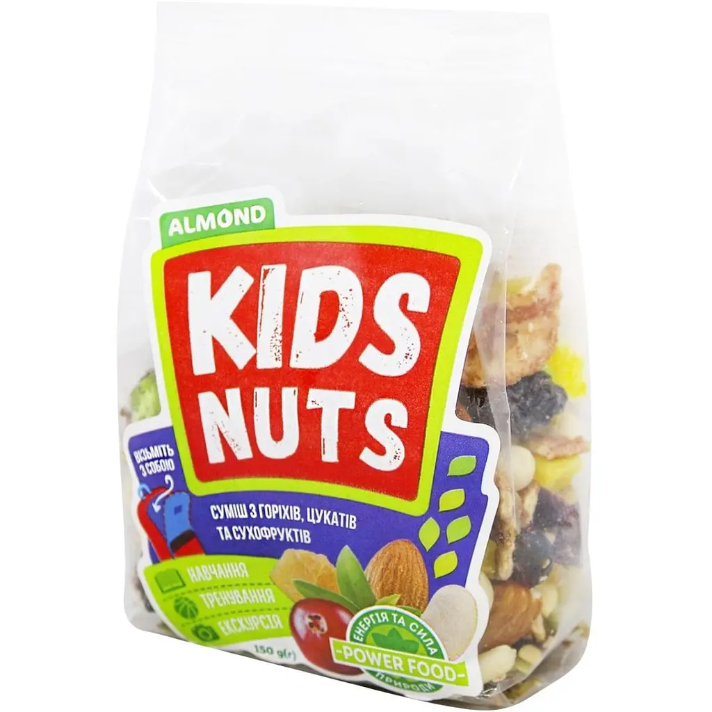 Смесь орехов и сухофруктов Almond Kids Nuts - это питательный, насыщенный и полезный вариант перекуса, который поможет утолить голод на работе, в школе, в дороге и наполнит энергией.