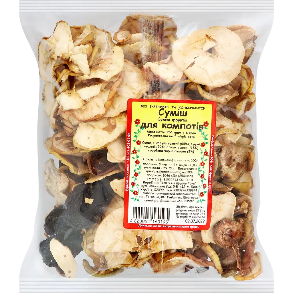Смесь сухих фруктов Світ фруктів для компотов - натуральный продукт, предназначенный для быстрого и удобного приготовления компота.
