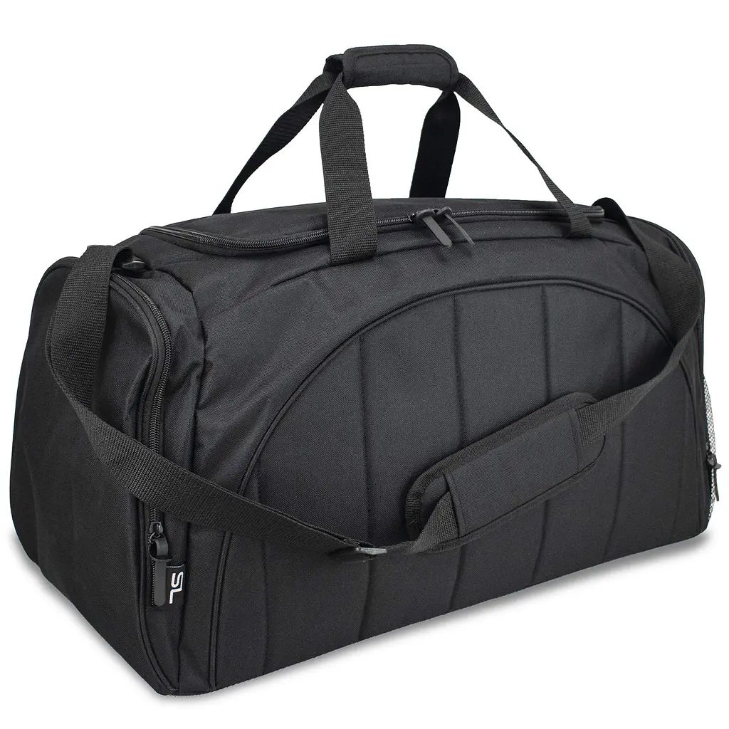 Водостойкая сумка для фитнеса и путешествий Semi Line 47 Black с мягкими подкладками на стенках и дни, что помогает держать форму и защищает содержимое сумки от повреждений. Она оборудована широкими ручками, соединенными манжетой на текстильной застежке Velcro. Объемный центральный отдел позволит разместить личные вещи и спортивный инвентарь, такой как теннисная ракетка или боксерские перчатки с шлемом. Все более мелкие вещи по своим местам можно разместить в двух наружных карманах на молнии и сетчатом кармане. Длинный наплечный ремень имеет мягкую, а главное длинную и широкую подкладку, не передавливающую плечо.