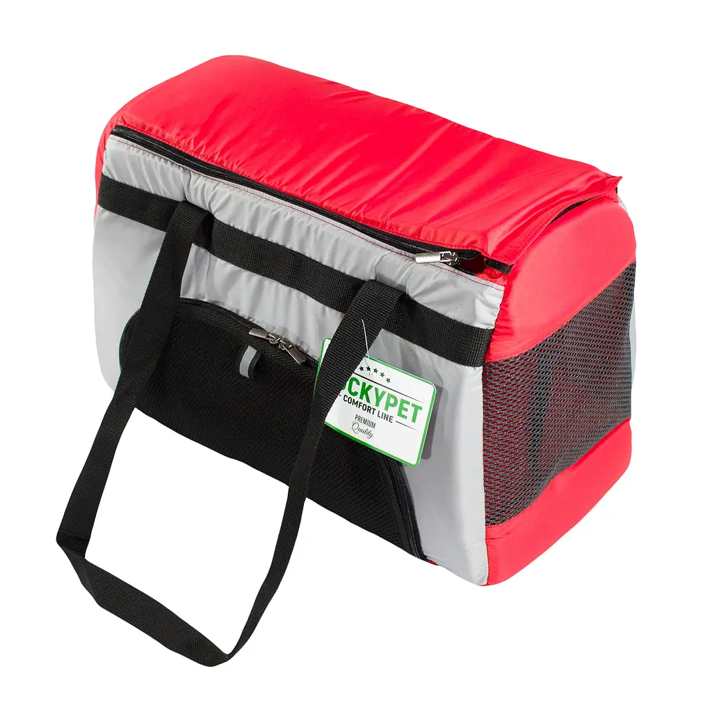 Уплотненное дно со съемным матрасом и наполнением листовым поролоном не дает телу животного провисать, а сумке деформироваться во время движения. Матрас на молнии и дополнительно можно заложить пеленку, утеплитель или заменить наполнение на новое.