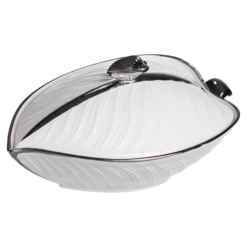 Современная фарфоровая супница с крышкой - это стильное решение для тех, кто ценит утонченный дизайн и практичность. Ее оригинальная форма с мягкими линиями и серебристым кантом придает сервировке особый шарм, делая подачу блюд не просто удобной, а эстетически совершенной. Такая супница станет элегантным акцентом как на повседневном, так и на праздничном столе.