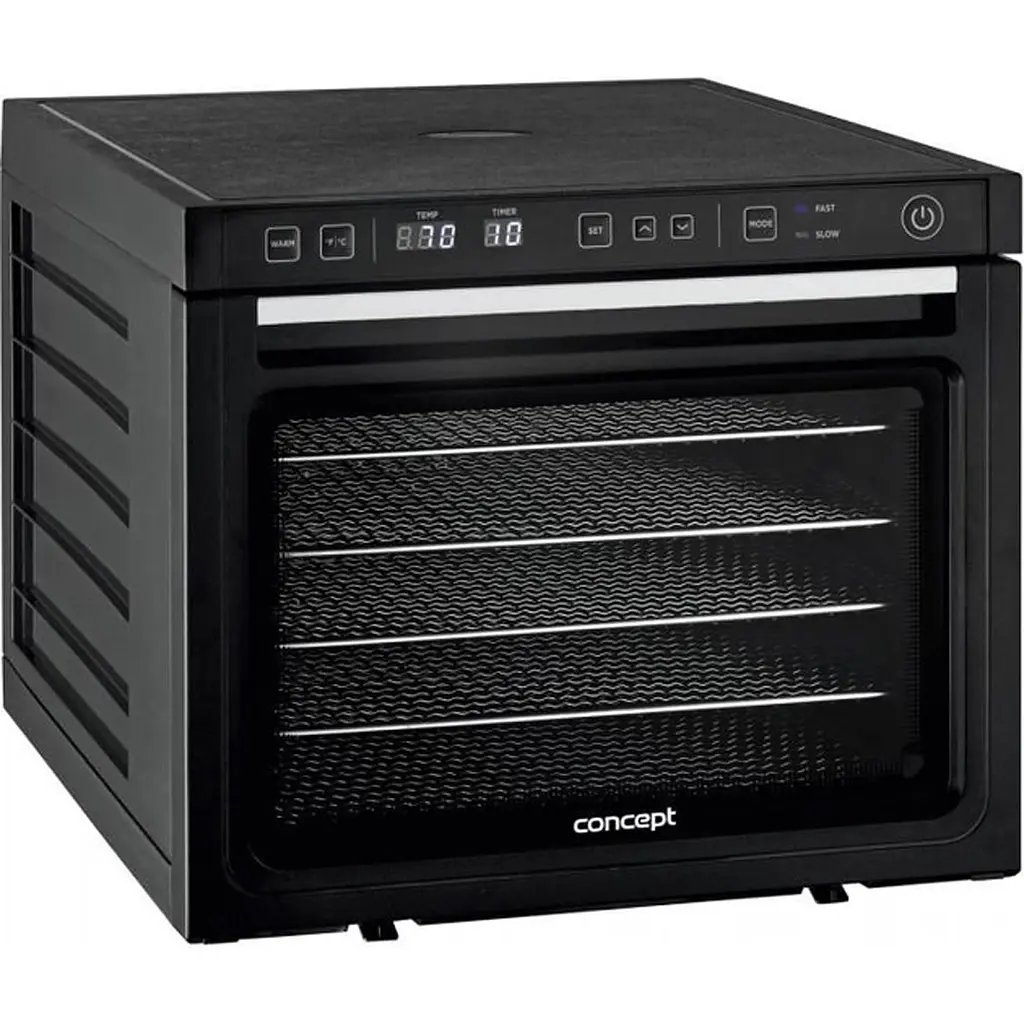 Удобная и многофункциональная. Электронное управление, диапазон температур от 35 до 70°C и 6 лотков для продуктов делают Concept SO-3030 удобной и многофункциональной. Ее потребляемая мощность составляет 1000 Вт, а материал лотков - нержавеющая сталь, обеспечивая долгий срок службы. Защита от перегрева, таймер выключения и термостат делают использование сушилки безопасным и удобным.