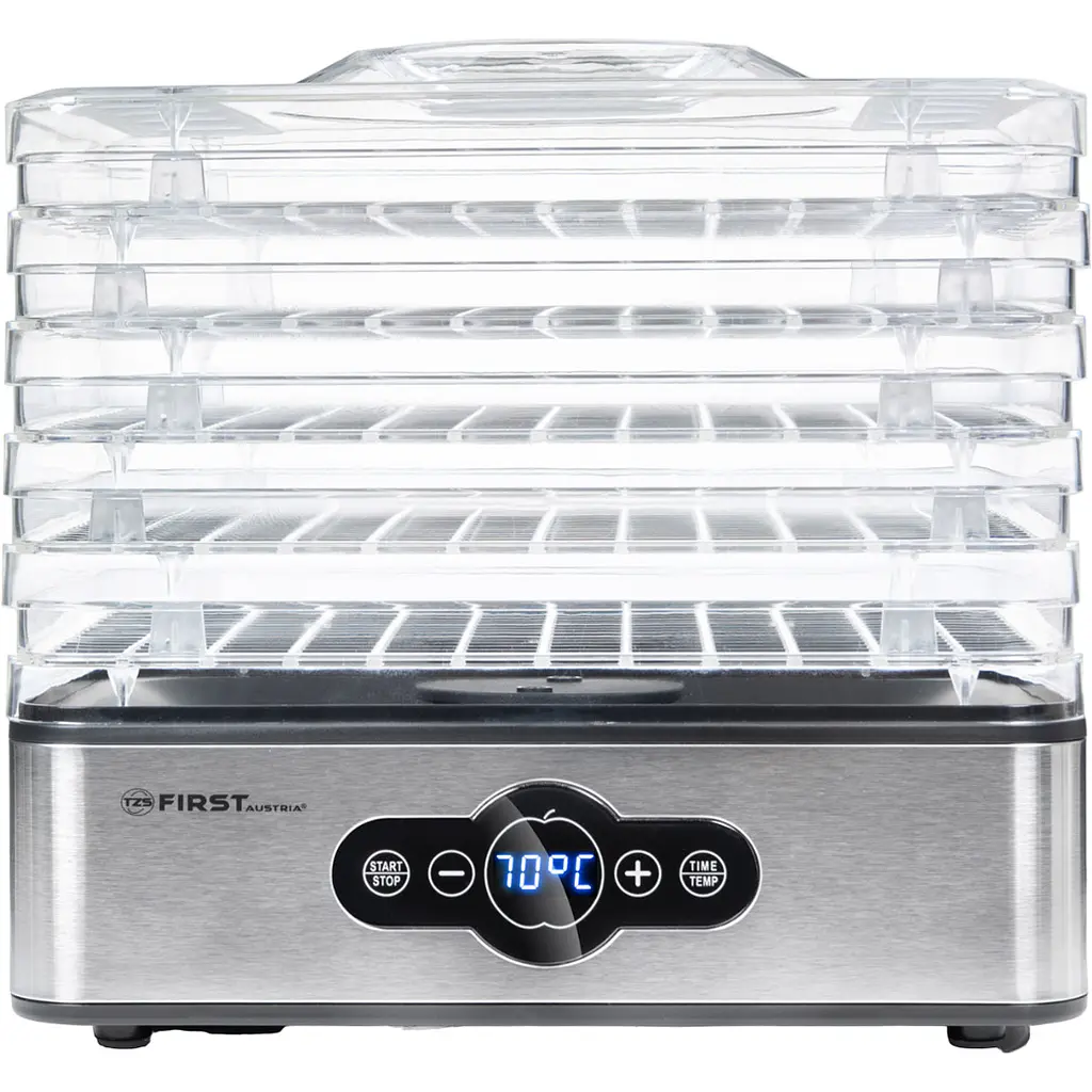 Забудьте о дорогих покупках сухофруктов. Не важно, лежат ли фрукты, овощи или мясо - процесс сушки полностью автоматизирован. Дегидратор First Austria оснащен терморегулятором, позволяющим настраивать температуру от 35°C до 70°C. Это идеально подходит для сохранения питательности и аромата ваших продуктов.