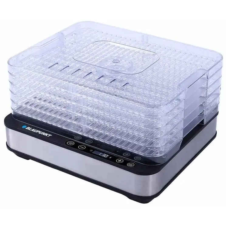 Пищевая сушилка Blaupunkt FDD601 имеет пять прозрачных лотков с общей площадью сушилки 3250 см 2 . Лотки имеют высоту 3 см и размер 32 х 25 см, что позволяет обрабатывать сразу большое количество даров леса или любимых фруктов. Скорость сушки также обеспечивается мощностью 420 Вт. Это обеспечивает высокую температуру, необходимую для сушки крупных или более влажных фруктов, таких как дольки яблок. Принудительный поток воздуха улучшает циркуляцию и дает продуктам высохнуть более равномерно.