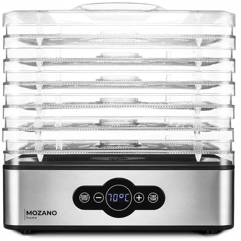 Сушилка MOZANO состоит из 6 лотков из нержавеющей стали с защищенными краями. Их особенная конструкция с дополнительным входным отверстием обеспечивает свободную циркуляцию нагретого воздуха, сокращает время высыхания и предотвращает прилипание.