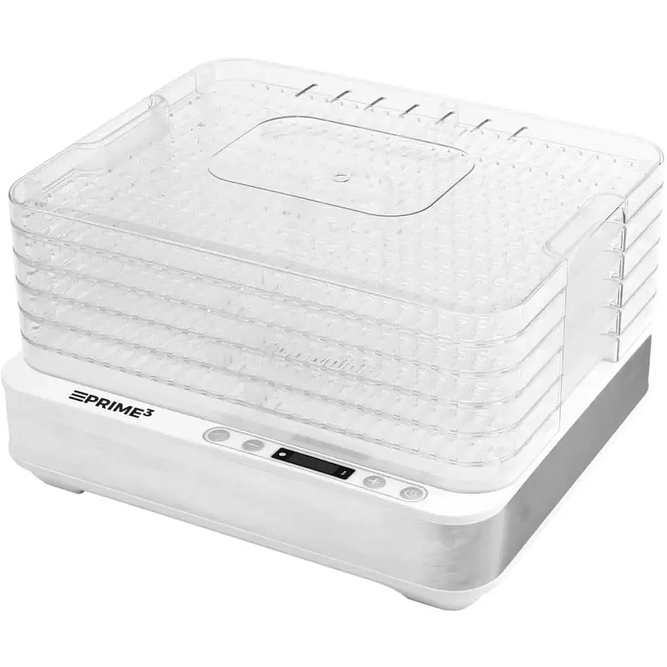 Сушилка для пищевых продуктов SFD51 от PRIME3 состоит из пяти прозрачных сит. Сита имеют высоту 3 см и размер 32х25 см, что дает общую площадь сушилки 3250 см2 и позволяет за один раз высушить большое количество собранных лесных даров или любимых фруктов. Мощность 420 Вт позволяет достичь высокой температуры, необходимой для сушки больших или влажных кусочков фруктов, таких как дольки яблок. Принудительный поток воздуха улучшает циркуляцию и дает продуктам высохнуть более равномерно.
