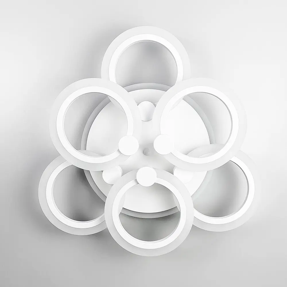 Люстра имеет 3 режима освещения + RGB подсветка. Мощность 63 Вт (31 Вт теплое и холодное + 10 Вт RGB ). Тип выключателя: 12 Серия: 2374 WH Цвет основания: Белый Размер потолочного основания: 30х4 см Цветовая температура: 3000–4500–6000К Материал основания: Металл Размер монтажной планки: 10 см Тип крепления: Монтажная планка Мощность (Вт): 63