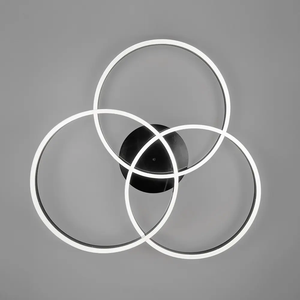 Большая черная LED люстра на 3 кольца: Графический акцент и мощный свет. Эта люстра - настоящий манифест современного стиля. Три больших кольца диаметром по 50 см в черном глянцевом исполнении образуют динамичную композицию размером 77х80 см. Черный глянец придает изделию глубину и премиальный блеск, делая люстру заметным декоративным элементом даже в выключенном состоянии. Благодаря мощности 110 Вт, она с легкостью заменяет несколько обычных светильников, наполняя светом даже самые просторные комнаты вашего дома. Ключевые преимущества и сценарии использования: Плавная регулировка яркости: С помощью пульта вы можете настроить освещение от максимального рабочего до мягкого вечернего, сохраняя комфорт для глаз. Три классических режима: Выбирайте между уютным теплым (3000K), естественным нейтральным (4500K) или бодрым холодным (6000K) светом под ваши нужды. Выразительный дизайн: Черный глянцевый корпус создает четкий контраст со светлым потолком, подчеркивая современный характер интерьера. Большая площадь освещения: Мощность 110 Вт позволяет качественно и равномерно осветить площадь до 30 м² без образования теней в углах. Режим ночника: Специальная функция для создания деликатной подсветки, идеально подходящая для вечернего отдыха за книгой или телевизором. Лучший вариант, когда: Вы ищете солидную, большую люстру с дистанционным управлением, которая будет выглядеть дорого и современно без цветных RGB-элементов. Идеально для: Центра большой гостиной, уютного зала или спальни, где важна возможность менять атмосферу одним нажатием на пульте. Гибкость выбора: Эта модель является частью функциональной серии A55067, где внимание сосредоточено на безупречном качестве глянцевого покрытия и долговечности светодиодных плат. Почему выбирают нас: Мы - специалисты по современному LED-освещению и знаем, как должен выглядеть идеальный глянец. У нас лучшие товары, потому что мы тщательно проверяем каждое черное кольцо на отсутствие царапин и тестируем работу пульта во всех режимах перед отправкой. С нами вы получаете не просто свет, а стиль и уверенность в качестве. Количество источников света: 15 Форма_изделия: Круг Тип помещения: Люстры для гостиной (в зал) Серия: A55067 Цвет основы: Черный Материал плафона: Акрил Цветовая температура: 3000–4500–6000К Материал основы: Металл Размер монтажной планки: 10 см Тип крепления: Монтажная планка Мощность (Вт): 100 Тип выключателя: Пульт дистанционного управления
