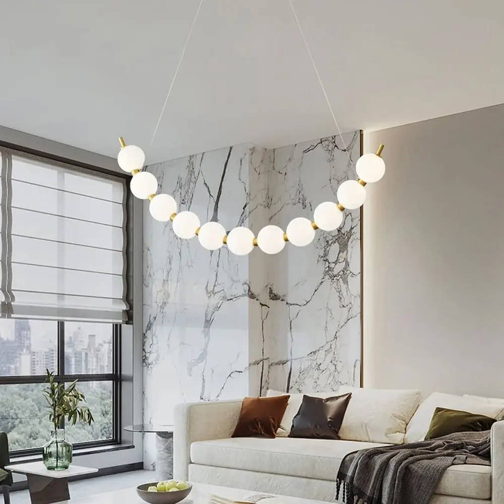 Люстра дуговая PEARLIES - это сочетание современного дизайна и элегантности, которое придает изысканности любому интерьеру. Ее конструкция напоминает жемчужное ожерелье, парящее в воздухе, где матовые шарики Ø 8 см чередуются с маленькими металлическими латунными шариками, создавая элегантный эффект. Эта модель представлена в 4-х вариантах: на 8 шариков длиной 66 см мощностью 10 Вт на 11 шариков длиной 85 см мощностью 14 Вт на 13 шариков длиной 105 см мощностью 16 Вт трехуровневая модель 8+11+13 шариков мощностью 40 Вт Люстру можно использовать как по отдельности, так и комбинировать варианты для создания невероятных световых композиций. Встроенные светодиоды поддерживают три режима освещения: теплый, нейтральный и холодный. Высота люстры регулируется, а также можно настроить высоту каждой стороны отдельно, что позволяет гармонично интегрировать люстру в любое пространство. Это декоративная люстра, которую стоит использовать как дополнение к основному освещению, подчеркивая стиль помещения. PEARLIES станет прекрасным акцентом над обеденным столом, в гостиной или барной зоне, добавляя легкости и изысканности вашему интерьеру. Количество источников света: 35 Тип помещения: Люстры для гостиной (в зал) Форма изделия: Прямоугольник Серия: Pearl Цвет основы: Латунь Материал плафона: Пластик Размер потолочной основы: 25х6х3 см Цветовая температура: 3000–4500–6000К Максимальная высота: 145 см Минимальная высота: 40 см Материал основания: Металл Размер монтажной планки: 24,5 см Тип крепления: Монтажная планка Мощность (Вт): 14