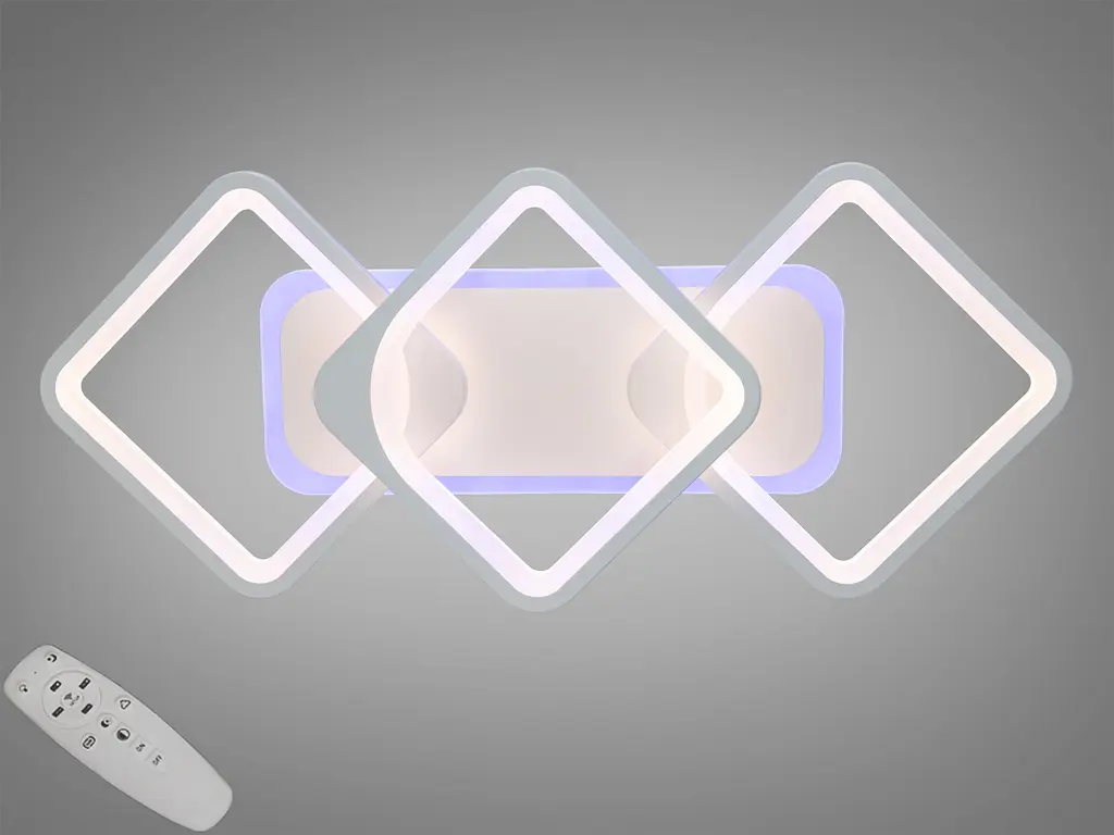 Современная светодиодная люстра серии 8060 - это изысканное решение для освещения любого интерьера. С мощностью 75 Вт, она идеально подходит для помещений среднего размера, обеспечивая эффективное освещение. Дизайн и материалы Люстра выполнена в форме трех квадратов с закругленными углами, создающих уникальную композицию. Изготовлена из акрила, она отличается прочностью и долговечностью, а акриловые рассеиватели гарантируют равномерное распределение света без ослепляющих эффектов.