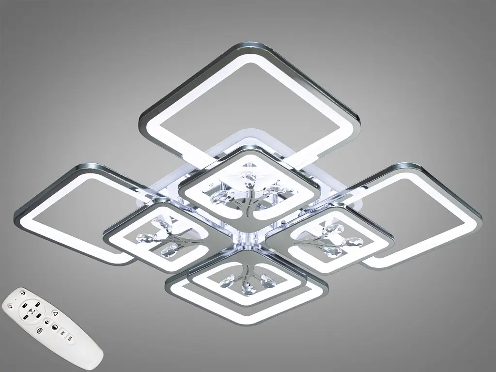 Многофункциональная светодиодная люстра для зала мощностью 190 Вт - это сочетание инновационного дизайна и передовых технологий. Элегантные квадратные плафоны, выполненные из прочного акрила, обеспечивают равномерное рассеивание света, создавая уютную атмосферу. Особенности дизайна Квадратная форма и хромированное покрытие добавляют современный вид. Встроенные хрустальные подвески придают роскоши, что делает люстру идеальной для современных интерьеров.