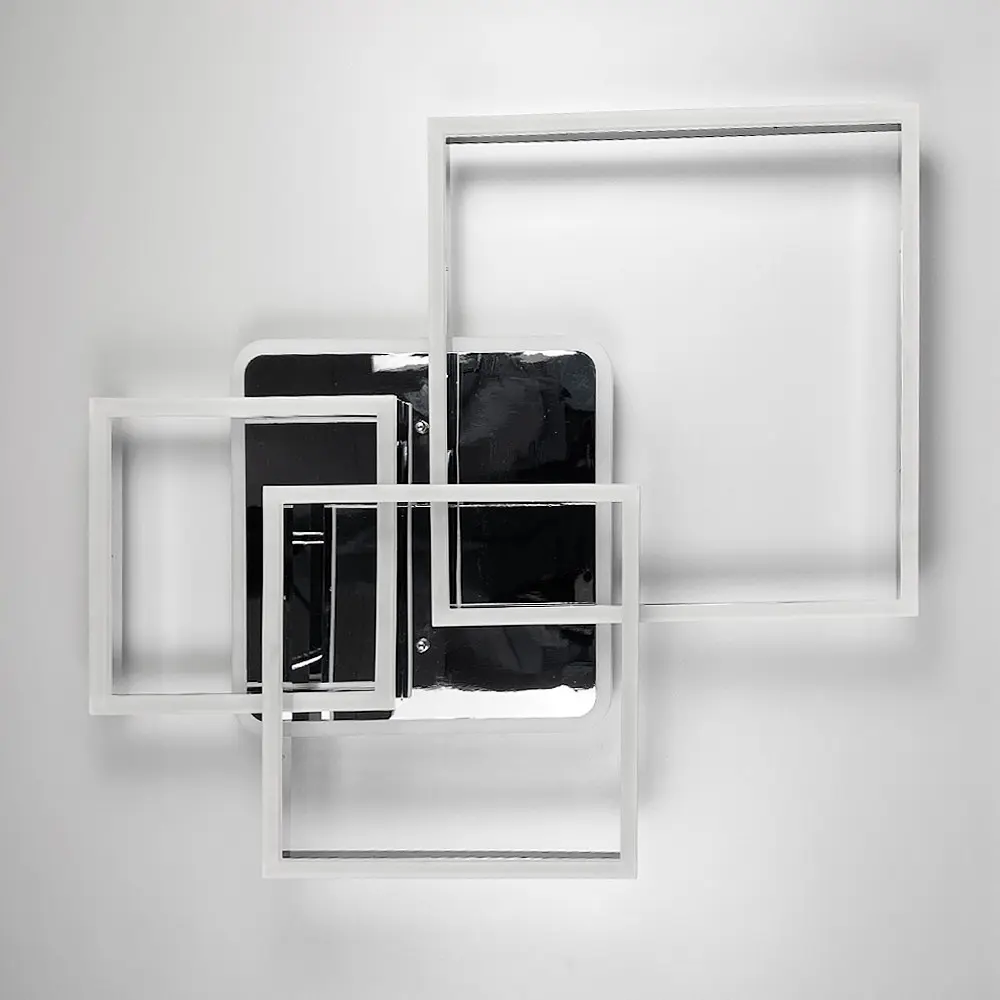 Люстра в современном стиле сочетает минимализм и функциональность, подчеркивая геометрическую эстетику пространства. Корпус изготовлен из металла цвета хром, что придает изделию легкость и универсальность, позволяя вписаться в интерьеры любого стиля. Размеры люстры составляют 70х60 см, а высота - 11 см, что делает ее идеальной для помещений средних и больших размеров. Основная особенность модели - встроенные светодиоды мощностью до 105 Вт с тремя режимами освещения (теплый, нейтральный и холодный свет). Дополнительно имеется декоративная подсветка на квадратной основе размером 33х33 см. Подсветка имеет два цвета - красный и синий, которые можно переключать в зависимости от настроения или потребности. Дизайн люстры основан на взаимодействии форм: рамки разного размера создают интересный визуальный акцент, а подсветка придает объемность конструкции. Такая люстра станет стильным акцентом в современном интерьере и подчеркнет его индивидуальность Тип цоколя: 11 Серия: A 11017/3 Цвет основания: Хром Вес (кг): 2,8 Размер потолочной основы: 33х3 см Цветовая температура: 3000–4500–6000К Материал основы: Металл Размер монтажной планки: 20 см Тип крепления: Монтажная планка Мощность (Вт): 105 Тип выключателя: Пульт дистанционного управления