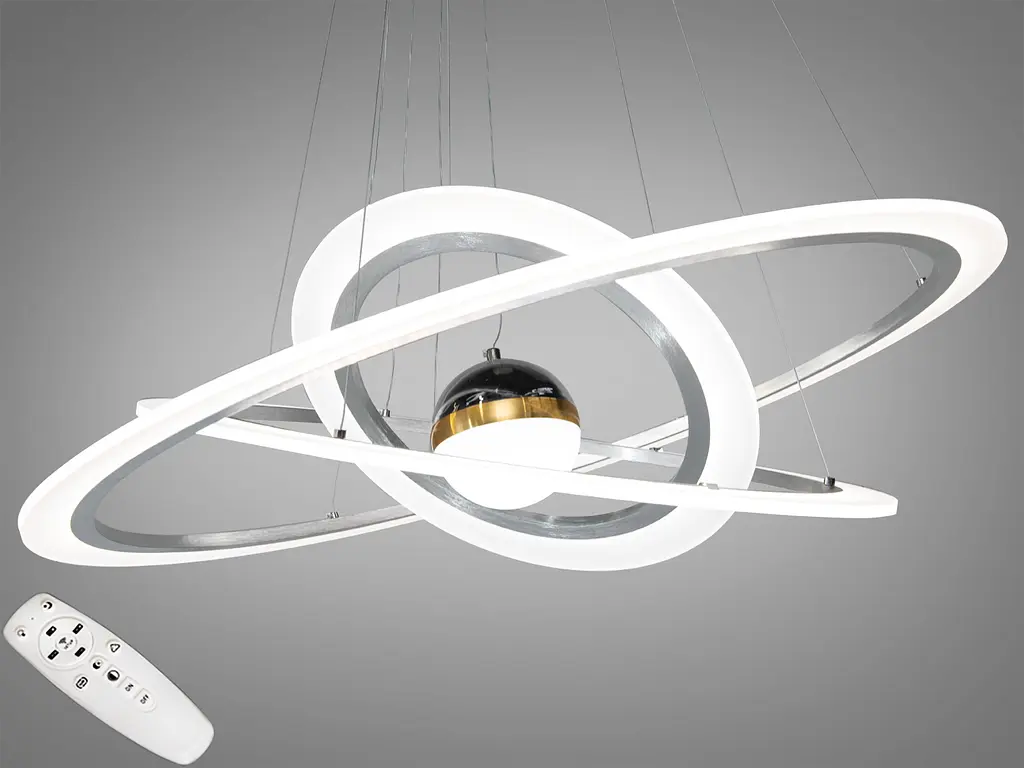 Светодиодные светильники «кольца» всегда будут в центре вашего внимания. Ведь за счёт регулировки шнура вы можете подвесить кольца по-разному, создавая свою личную композицию. Перед Вами совсем новое и необычное исполнение плафонов, обрамляющих LED лампы. Такая люстра запросто подойдет под любой интерьер – классический, современный и даже в стиле «хай-тек». В комплекте с люстрой идёт самый современный тип пульта с электронным диммером и регулятором цвета. С пульта можно включить один из предустановленных режимов освещения - тёплый свет, холодный свет, нейтральный; включить режим "ночник" (люстра будет включена всего на 5% мощности LED-люстры), уменьшить или увеличить яркость на 50%, а если всего этого покажется мало - плавно отрегулировать уровень яркости и цветовую температуру. С выключателя люстра переключается как и любая другая светодиодная люстра. Каждое включение выключение поочередно переводит люстру по следующим режимам: холодный свет, тёплый свет, нейтральный свет. 9079