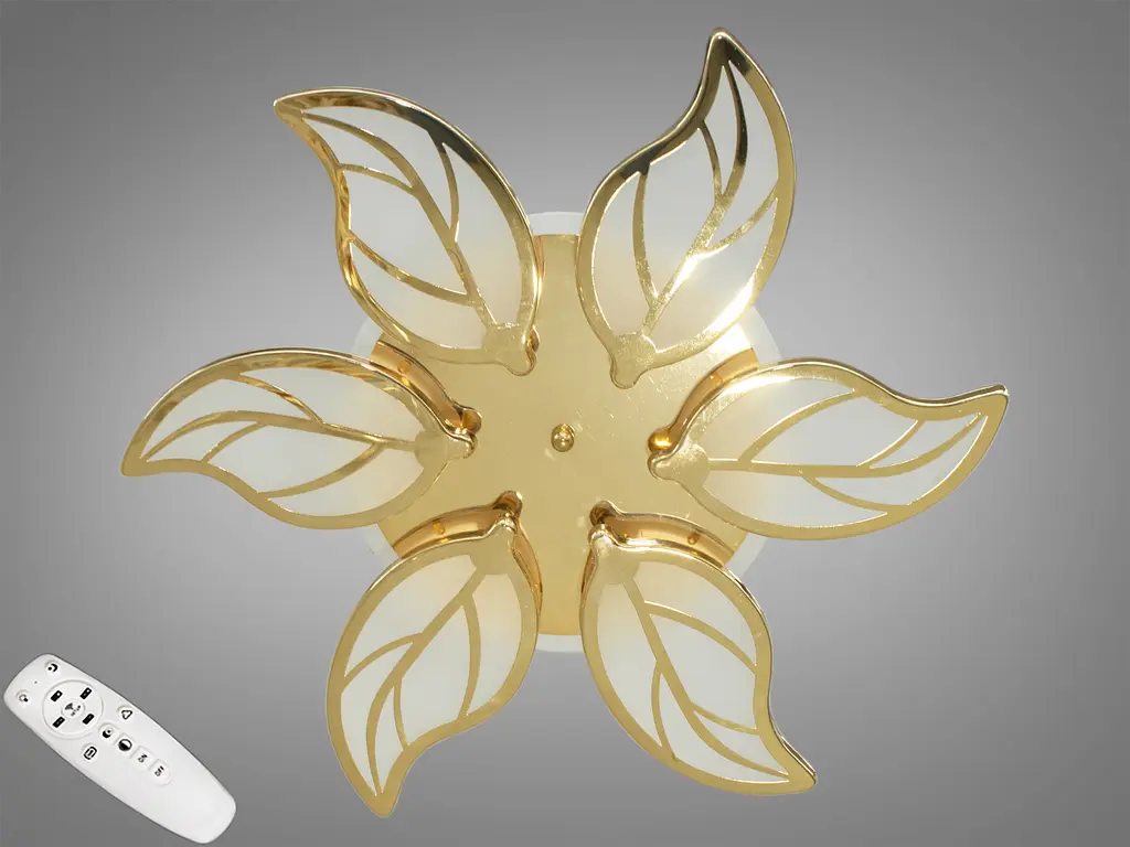 Встречайте хитовую модель в золотом исполнении. Эта LED люстра с диммером и цветной подсветкой от "Диаша" является энергетически мощным произведением искусства, озаряющим мощностью 105W. Акриловая люстра LED превращает обычный потолочный светильник в захватывающую композицию, которая имитирует нежное раскрытие цветка или разворачивание бабочки, даря каждому лучу света цель и направление.
