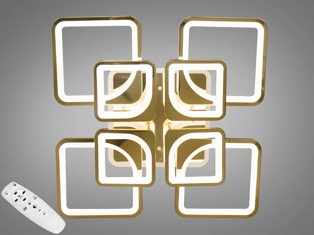 Встречайте самую хитовую модель в золотом исполнении! Потолочная светодиодная люстра в гостиную – это настоящее произведение искусства освещения, которое обогатит любой современный интерьер. Благодаря своим чистым линиям и квадратной форме, она идеально подходит для тех, кто ценит минималистичный дизайн с высокими технологическими стандартами. Лед люстры квадратные потолочные идеально подходят для создания современного дизайна в помещении. Квадратная светодиодная люстра в гостиную имеет мощность 190 Вт и оснащена диммером и светодиодной подсветкой, что позволяет регулировать цветовую температуру света с пульта или выключателя. Эта функция добавляет гибкости в создании атмосферы помещения, от яркого света, необходимого для рабочего процесса или собраний, до мягкого теплого света, подходящего для релаксации и отдыха. Помимо основного освещения, она имеет функцию ночника, которая создает мягкий и приглушенный свет, идеальный для использования ночью. Это особенно полезно, если нужно вставать ночью и не хочется нарушать покой темноты ярким светом. Светодиодная люстра дает мягкий рассеянный свет теплого, холодного или нейтрального свечения. LED подсветка дает примерно 10 Вт и светит синим, красным или розовым светом. Благодаря диммеру вы можете регулировать яркость люстры вплоть до режима ночника, а это 5% основного света. Все управление происходит с помощью пульта. Люстра имеет акриловый рассеиватель, который обеспечивает равномерное распределение света, избегая ослепления и теней, что важно для создания комфортного освещенного пространства. Кроме того, акриловые материалы отличаются высокой прочностью и долговечностью, что делает эту люстру надежным источником света на многие годы. Гибкость в выборе стилей и режимов освещения делает эту лед люстру идеальной для различных пространств – от домашних интерьеров до офисных зон. Она не только улучшает визуальный опыт пространства, но и добавляет практичности и стильного вида. Лед люстра на 20 квадратов обеспечит равномерное и яркое освещение большого пространства. Простые геометрические формы, легкий вес, небольшая высота, прочный корпус, функциональность этой люстры отлично подойдут для новостроек и современного интерьера.Потолочная led люстра станет изысканным дополнением интерьера, добавляя ему стиль и свет. Люстра поставляется в заводской упаковке, электрика уже собрана. LED люстра состоит из светодиодной ленты, блока питания светодиодной ленты, электронного димера и блока управления пультом. Люстра с пультом в комплекте. Когда решите купить светодиодную люстру, обязательно учтите дизайн вашего пространства для гармоничного сочетания. На сайте нашего интернет-магазина представлены светодиодные люстры, цена которых удовлетворит любой бюджет и дизайнерские потребности. Сейчас самое время купить светодиодную люстру недорого, воспользовавшись нашими акционными предложениями.
