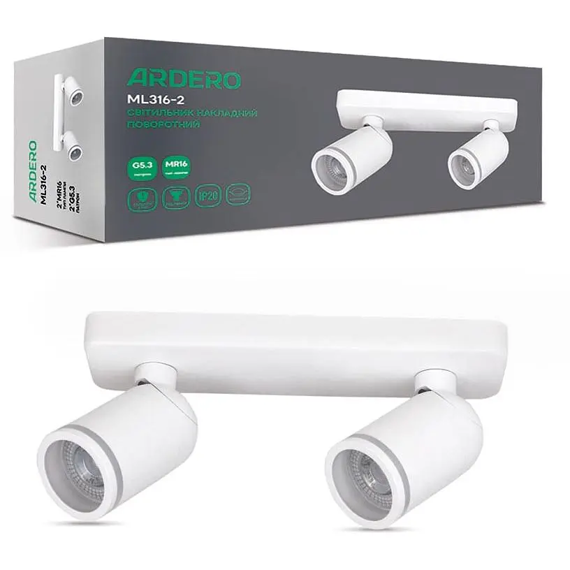 Накладной поворотный светильник Ardero под лампу Ardero ML316 является идеальным выбором для освещения любых помещений, включая жилые, коммерческие и офисные помещения.
