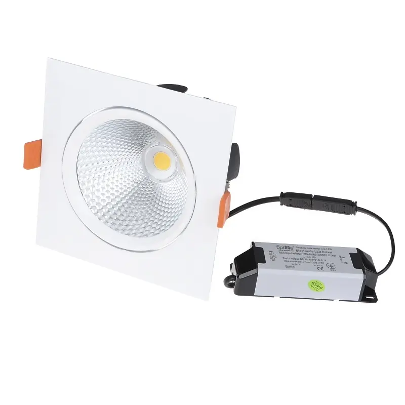 Светодиодный светильник LED-41/20W COB WW DL изготовлен из металла и стекла, хорошо подходит для монтирования в подвесной потолок в больших помещениях, офисах, выставочных залах или музеях. Светильник белого цвета квадратной формы выполнен в стиле hi-tech. Благодаря скромному дизайну легко впишется в любой интерьер. Осветительный прибор работает только благодаря одному светодиоду типа СОВ, обладающему большой площадью излучения. Светодиод излучает ровный теплый белый свет со световым потоком 75 лм. Угол рассеяния света составляет 36 градусов, мощность – 20 Вт. Рассчитанный светильник для работы в сети переменного тока с номинальным напряжением 220 В. Несомненным преимуществом светильника является возможность изменять угол наклона рассеивателя света, а соответственно и площадь освещения. Таким образом, необходимые участки в помещении будут ярко освещены. Кроме того, светодиод имеет высокий коэффициент светоотдачи: при небольшой потребляемой мощности, он дает мощный световой поток, что может превышать световой поток лампочки накаливания аналогичной мощности в десять раз. Срок службы светильника составляет 25000 часов. О смене лампы вы сможете забыть надолго.