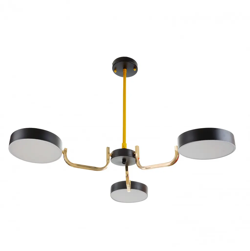 Светодиодная люстра BL-751S/3 WW+CW 21W*2 - это современный модный светильник со стильным дизайном черного и золотистого цвета. Модель подойдет для спальни, гостиной, прихожей или холла. Имеет конструкцию, состоящую из трех цилиндрических плафонов, прикрепленных к держателям, которые другим своим концом соединены с основанием люстры. Светильник крепится к потолку с помощью монтажной планки. В плафонах расположены встроенные светодиоды общей мощностью 42 Вт. Светодиодная люстра может обеспечивать теплую или холодную температуру свечения. Светодиоды генерируют световой поток с отдачей до 75 лм/Вт. ЛЕД источники очень экономичны и имеют длительный срок эксплуатации. Люстра создает мощный световой поток с высоким индексом цветопередачи (> 80Ra). Дизайн люстры делает модель подходящей для интерьеров, оформленных в разных стилях. Габариты светильника 800*480 мм.