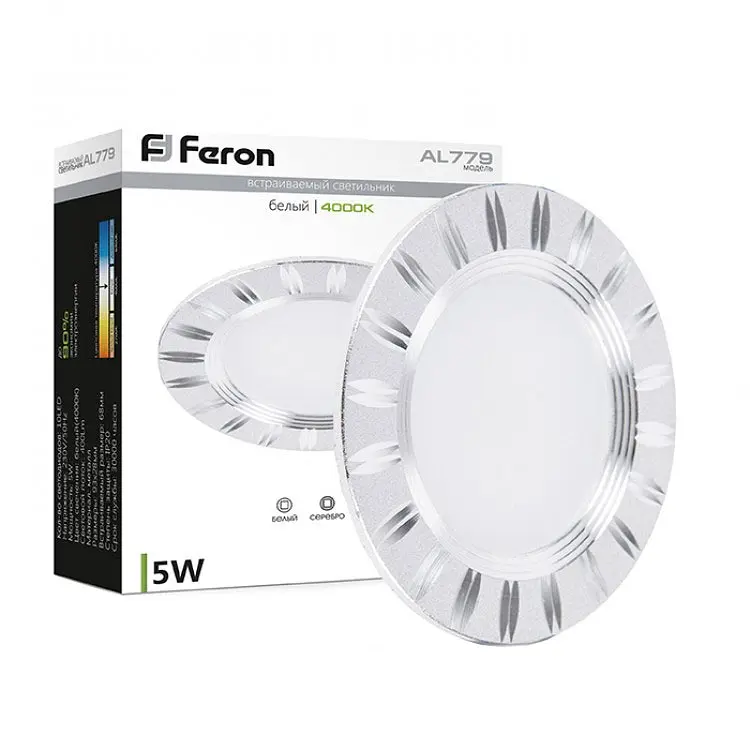 Встроенный светодиодный светильник Feron AL779 типа downlight – это современный и энергоэффективный светильник, который идеально подходит для жилых, административно-офисных, торговых и общественных помещений. Благодаря компактному дизайну и высокому качеству исполнения светильник обеспечивает комфортное освещение и гармонично вписывается в любой интерьер.