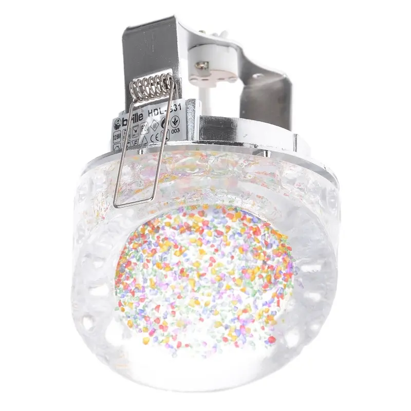 Точечный светильник HDL-G31 обладает оригинальным дизайном и сочетает в себе два разных материала. Металлическое основание и стеклянный плафон. Источником света в данной модели точечного светильника является одна галогенная рефлекторная лампа с цоколем GU5.3, которая работает от напряжения как от 220В, так и от 12 В. Для его подключения можно обойтись без трансформатора. Светильник предназначен для освещения отдельных участков помещения или подсветки декоративных элементов декора. Данный светильник отлично дополнит основное освещение и станет частью вашего интерьера.