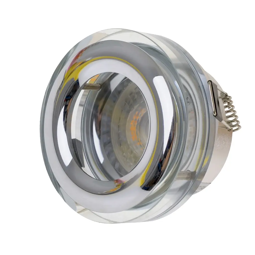 Точечные светильники – удобный и практичный вариант дополнительного освещения. Они не «съедают» лишних сантиметров полезного пространства, отлично вписываются в гипсокартонные конструкции, арки, подвесные и натяжные потолки любых типов (при условии использования светодиодных или люминесцентных ламп – они гораздо меньше нагреваются в процессе работы, по сравнению с другими видами, галогенные и лампы накаливания имеют ряд ограничений). Также их устанавливают над рабочей поверхностью на кухне, в гардеробных и даже в шкафах. Такие «точки» давно стали привычным элементом нашей жизни, существенно повышая ее комфорт. Модель точечного светильника HDL-DS 173 GU5.3 CH – круглой формы, диаметром 80 см, корпус выполнен из металла. В качестве источника света используется лампа с цоколем GU5.3. Она может быть светодиодная или галогенная. Степень защиты от проникновения влаги и пыли IP20 – это означает, что прибор можно использовать исключительно в домашних условиях. Для уличного освещения или установки в ванной стоит подобрать другой светильник. Ознакомится с инструкцией для подключения можно здесь.