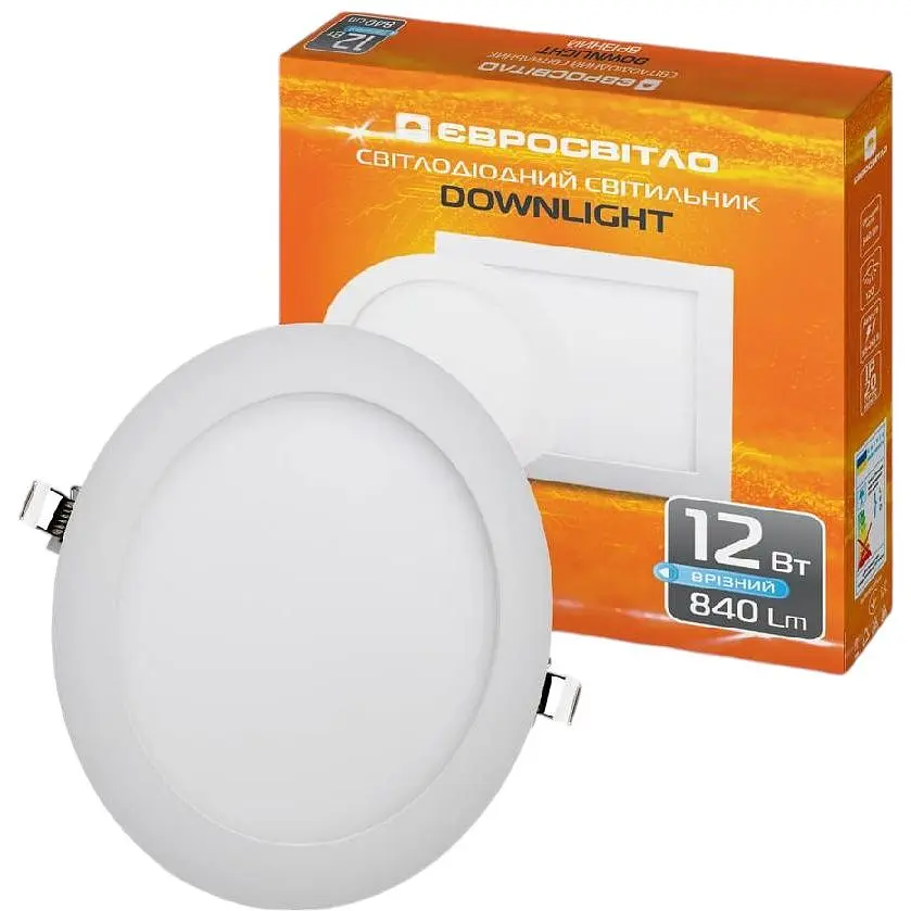 Светильник точечный врезной Євросвітло 12Вт круг LED-R-170-12 4200К берут для размещения на подвесных потолках. Его используют в магазинах и модных бутиках, салонах красоты, шоу-румах, ресторанах, квартирах. Светодиоды в светильнике расположены так, что он наполняет помещение рассеянным дневным светом, который не бьет в глаза и не дает бликов.