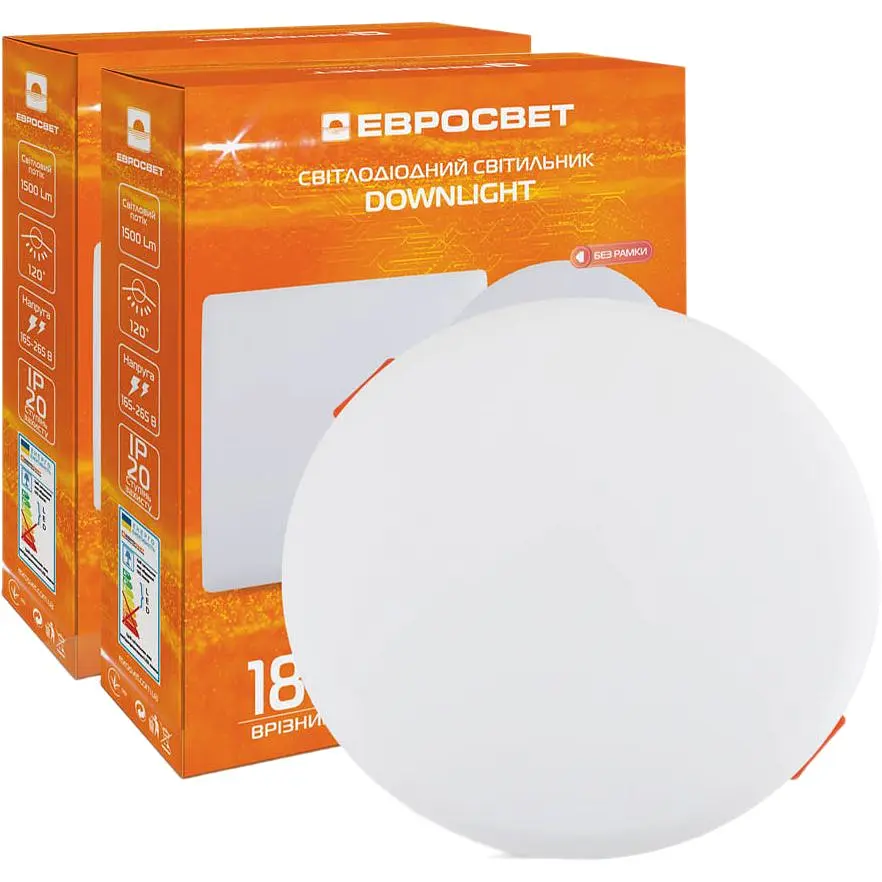 Светодиодный светильник точечный врезной Євросвітло 18Вт круг LED-R-120-18 4200К без рамки рассчитан на подвесной потолок. Корпус даунлайта едва нагревается, чем делает невозможным деформацию поверхности или изменение цвета покрытия.