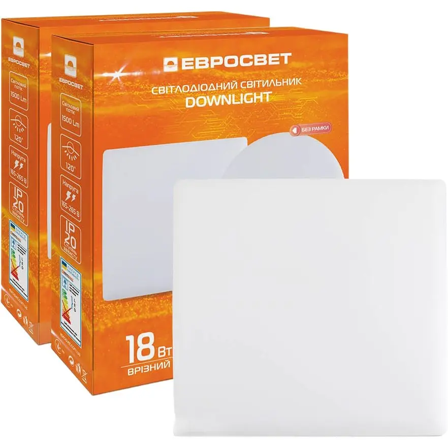 Светодиодный светильник точечный врезной Євросвітло 18Вт квадрат LED-S-120-18 4200К без рамки предназначен для натяжных потолков и потолков из гипсокартона. Простая установка обеспечивается регулируемым врезным диаметром от 50 мм.