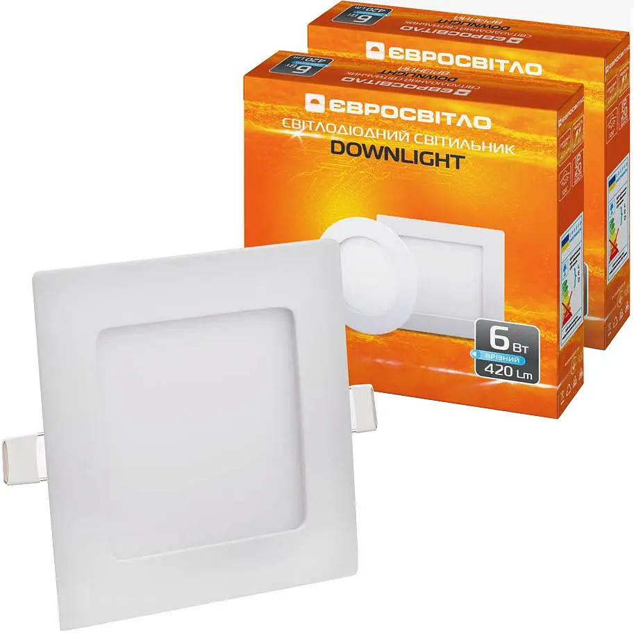 Небольшой светильник точечный врезной Євросвітло 6Вт квадрат LED-S-120-6 6400К покупают для зонирования пространства, освещения коридоров, квартир и дизайнерских решений.