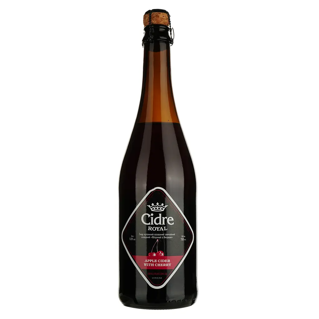 Сидр Cidre Royal (Сидр Роял) с вишней изготовленная из яблочного купажного сидра с добавлением вишневого сока и бузины, меда и винного настоя гвоздики и корицы, которые придают ему неповторимый вкус и аромат.