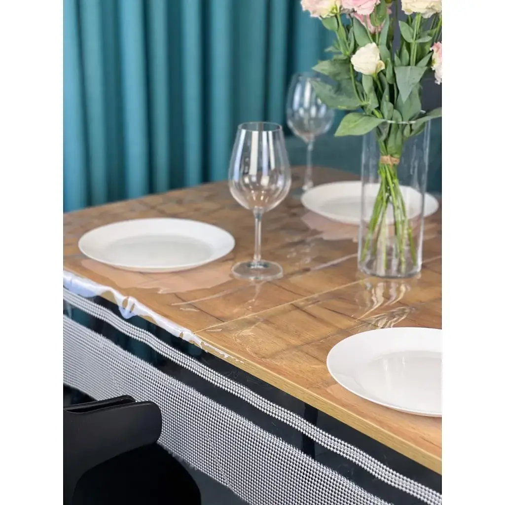 В первую очередь, такое покрытие надежно защитит столешницу от повреждений, возникающих в процессе пользования мебелью (сколы или царапины). К тому же, термостойкий материал с легкостью выдерживает температуру посуды с горячими напитками. Минимальные усилия необходимо прикладывать для ухода за скатертью, существенно сэкономят Ваше время, ведь достаточно лишь протереть поверхность. Забудьте о глажке и стирке - мягкий силикон ложится на поверхность, как второй слой лака, образуя гладкую прозрачную поверхность.