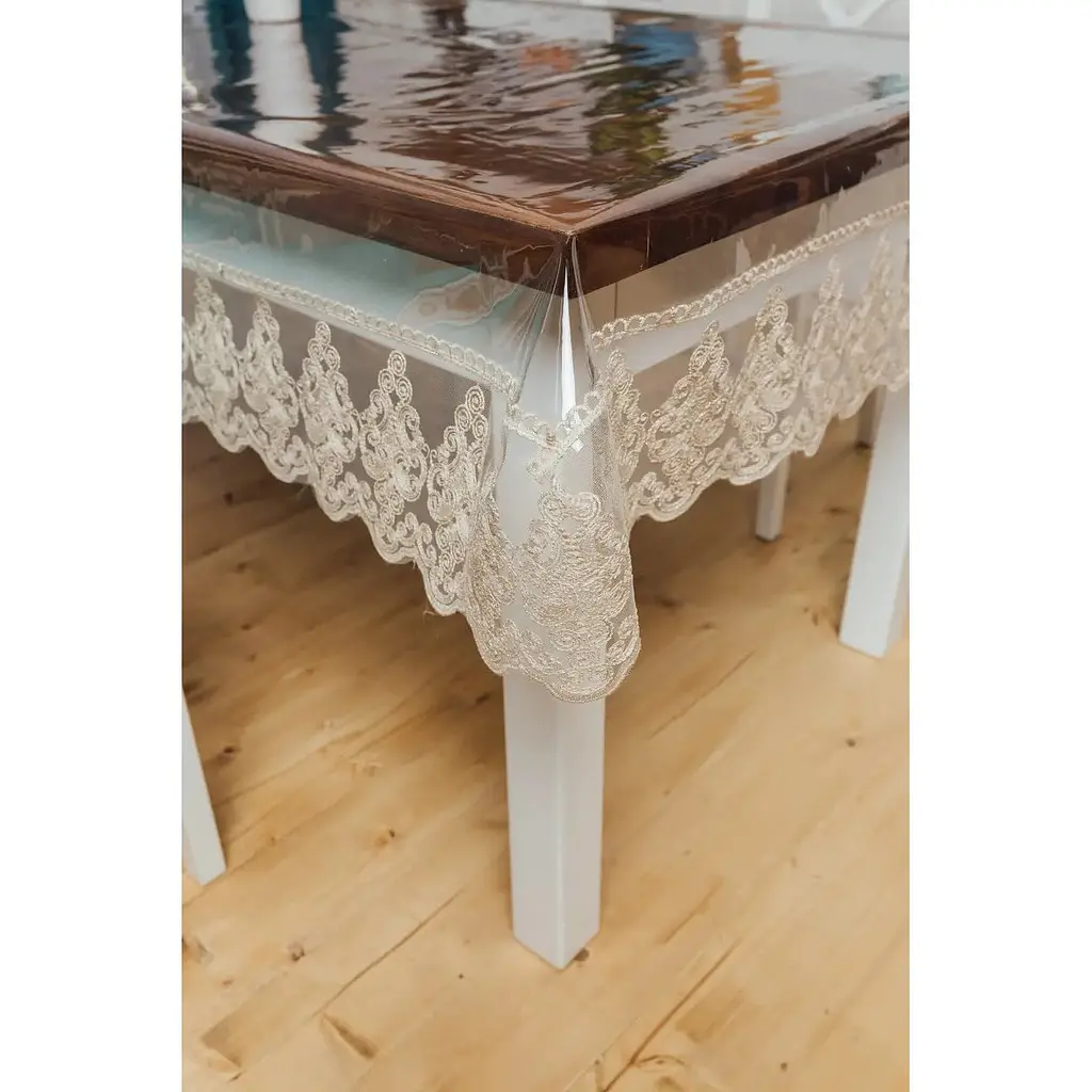 В первую очередь, такое покрытие надежно защитит столешницу от повреждений, возникающих в процессе пользования мебелью (сколы или царапины). К тому же, термостойкий материал с легкостью выдерживает температуру посуды с горячими напитками. Минимальные усилия необходимо прикладывать для ухода за скатертью, существенно сэкономят Ваше время, ведь достаточно лишь протереть поверхность. Забудьте о глажке и стирке - мягкий силикон ложится на поверхность, как второй слой лака, образуя гладкую прозрачную поверхность.