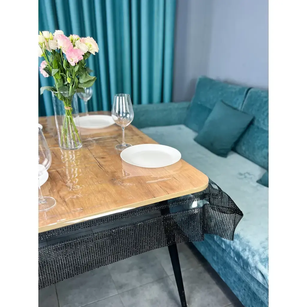 • Скатерть силиконовая с черной стразовой лентой двойной 280х180 см - миниатюра 2