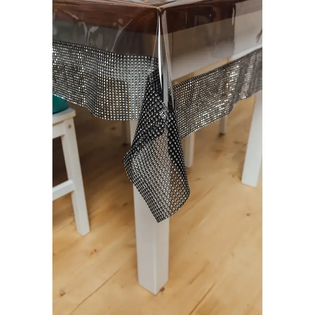 Скатерть силиконовая с черной стразовой лентой с камнями 330х140 см - фото 4