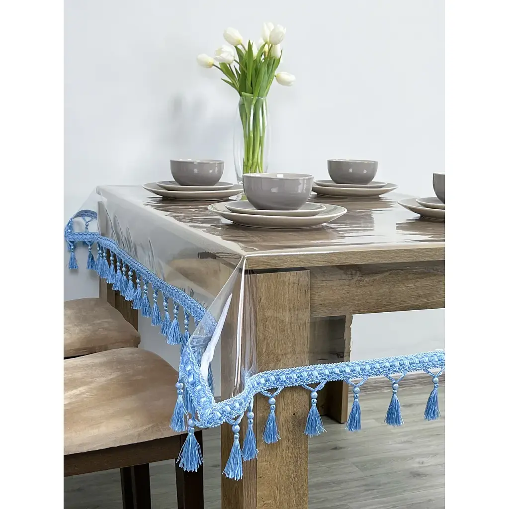 Скатерть силиконовая с синей бахромой 400х200 см - фото 5
