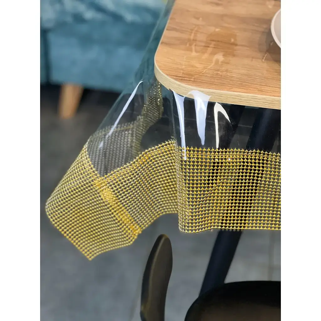 Скатерть силиконовая с золотой жемчужной лентой 310х180 см - фото 5