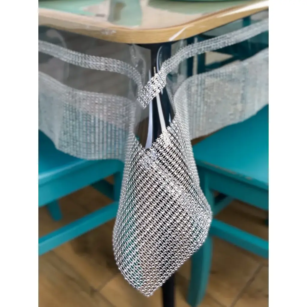 • Скатерть силиконовая с серебряной стразовой лентой двойной 170х130 см - миниатюра 7