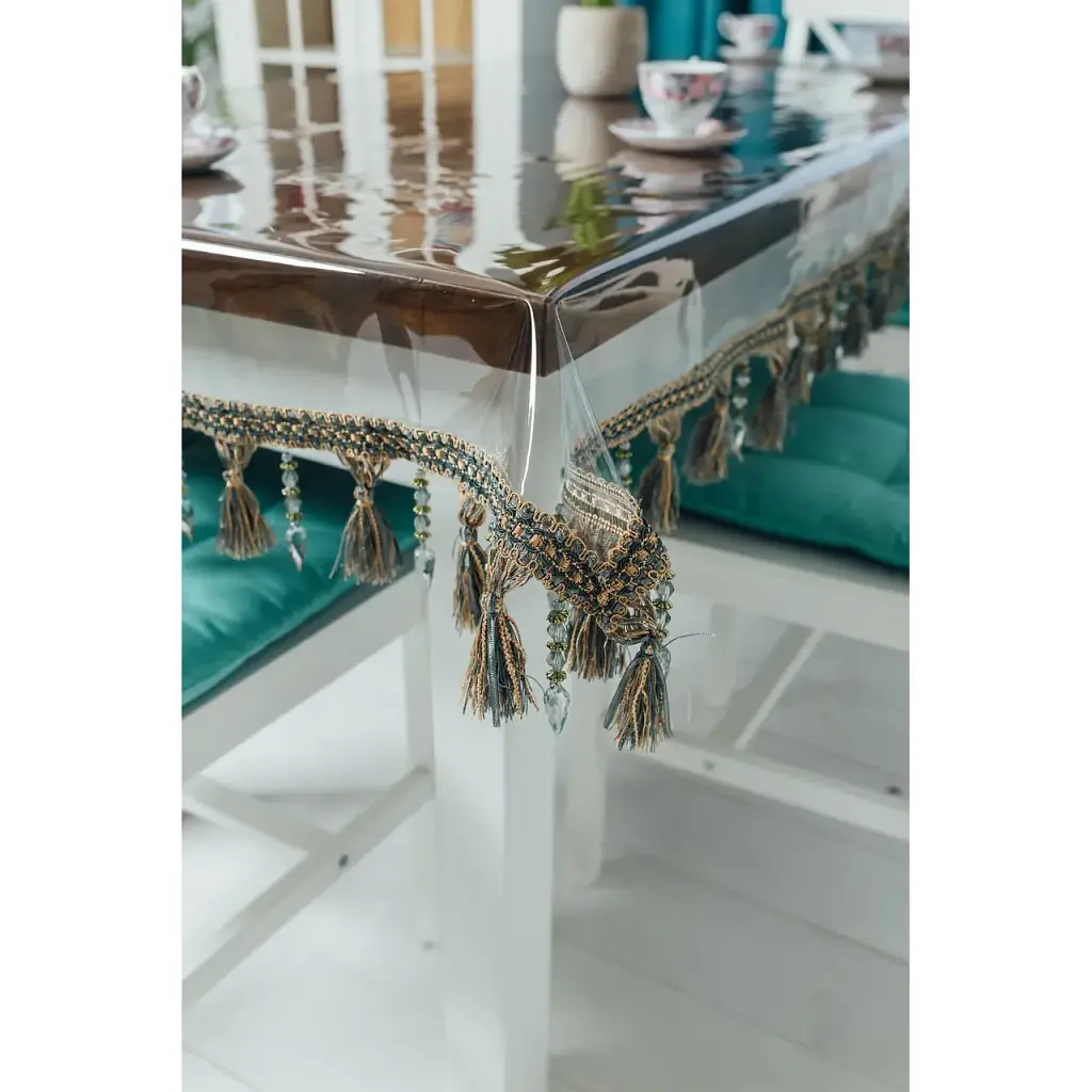 Скатерть силиконовая с серо-бежевой бахромой 360х200 см - фото 1