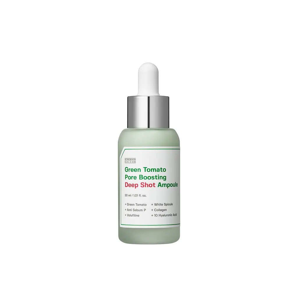 Сыворотка ампульна глубокого действия Sungboon Editor Green Tomato Pore Boosting Deep Shot Ampoule обеспечивает сужение пор, максимально глубокое увлажнение и регенерацию кожного покрова.