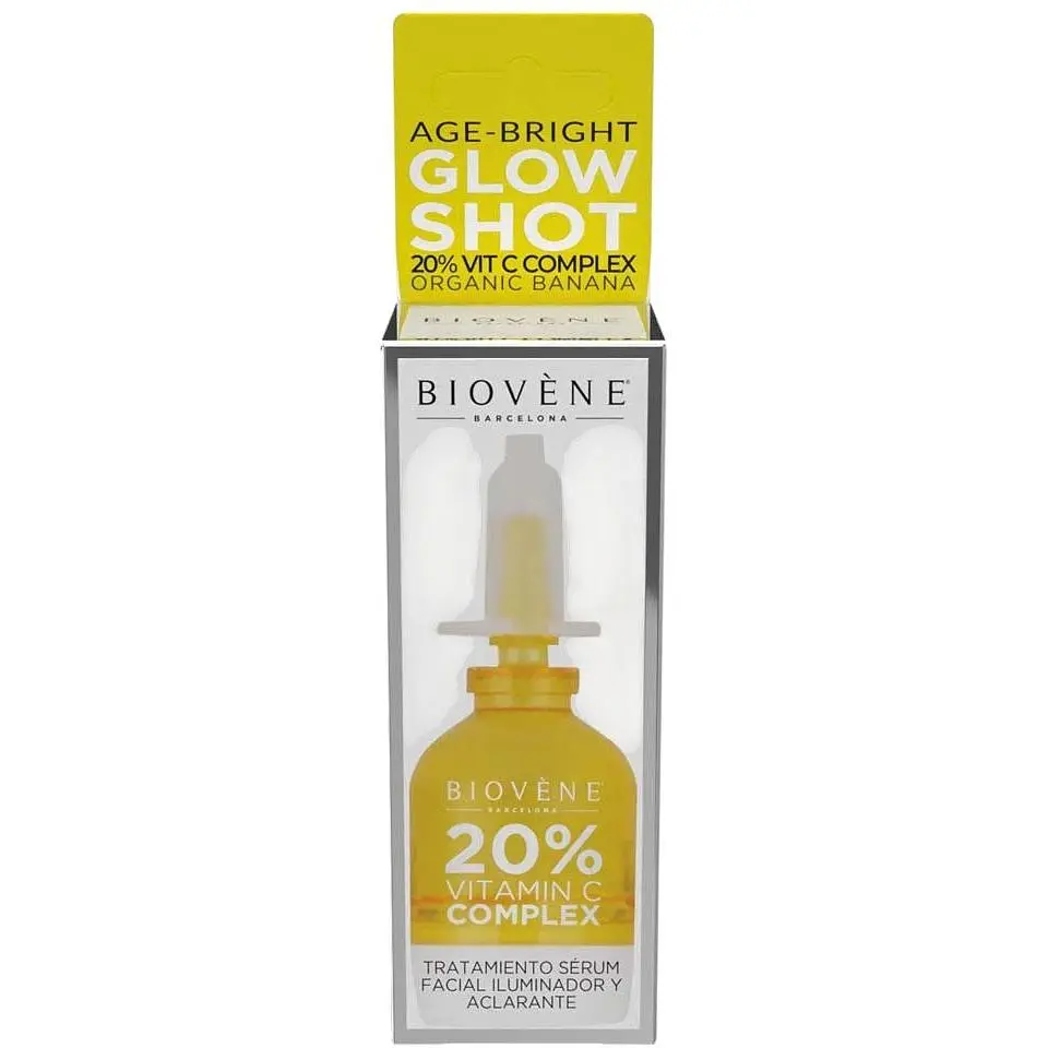 Сыворотка для лица Biovene Glow Shot Age-Bright 20% VIT C + Organic Banana Facial Serum Treatment с защитным от старения кожи и органическим бананом подходит для тусклой и уставшей кожи, с гиперпигментацией или признаками старения.
