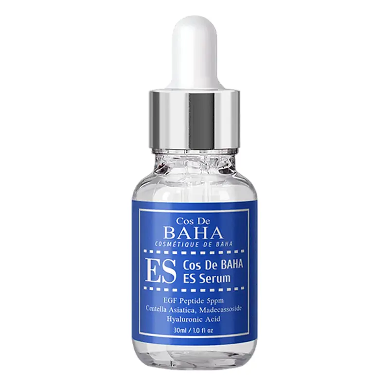 Сыворотка Cos De BAHA ES омолаживает кожу с помощью центеллы азиатской и мадекасозида, стимулируя выработку коллагена и минимизируя мелкие морщинки.